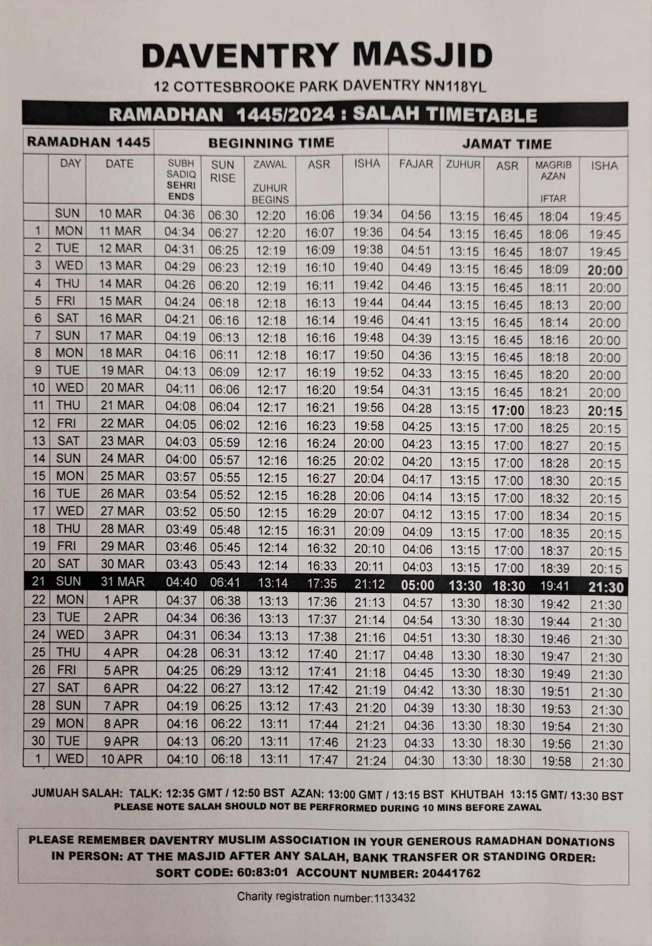 Please click here to see RAMADAN Timetable March 2024 (image)